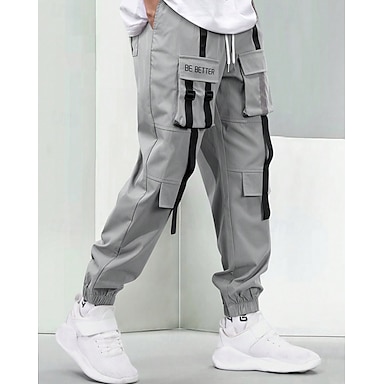 Per uomo Pantaloni cargo Pantaloni della tuta Chino Tasche Gamba dritta Polsino elastico Tinta unica Traspirante Indossabile Lunghezza intera Feste Esterno Interni Sportivo Semplice Bianco grigio Nero
