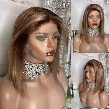 Parrucca con chiusura in pizzo 5x5 senza colla, 100% capelli umani brasiliani remy, parrucca frontale in pizzo 13x4, parrucca con capelli umani biondo cenere lisci con capelli ombré e mèches colorate