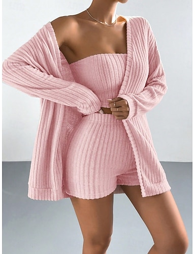 Per donna Set Pigiama 3 Pezzi Casual Comfort Colore Puro Elastico in vita Shorts Quotidiano Casa Manica Lunga Blu Nero Rosa Estate Primavera Autunno Vestibilità regolare