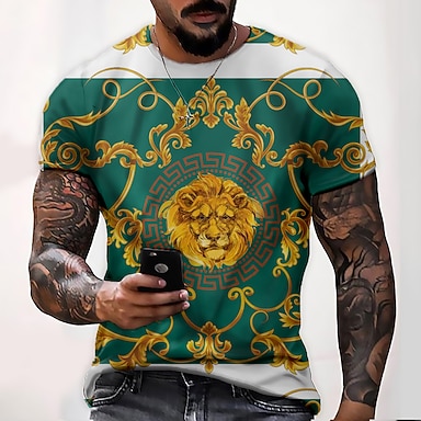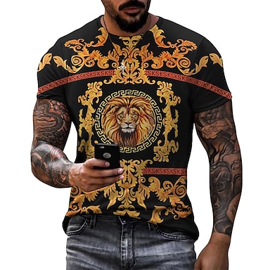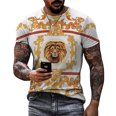 Per uomo Plus Size POLO Grande e alto Leone Collo ripiegabile Stampa Manica corta Primavera estate Sportivo Di tendenza Streetwear Originale Esterno Strada Top