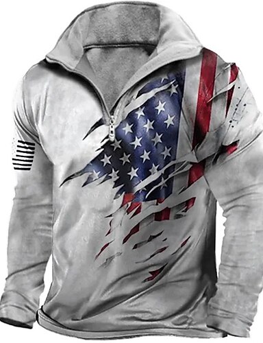 4 luglio 2026 250° Per uomo Zampa Veterani Polo con zip Manica Lunga Magliette polo Collo ripiegato Con cerniera Astratto All'aperto Abbigliamento casual alla moda Casual Quotidiano 3D Stampato