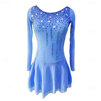 Abito da pattinaggio artistico Per donna Pattinaggio sul ghiaccio Vestito Azzurro cielo Patchwork Schiena aperta Elasticizzato Allenamento Competizione Vestiti da pattinaggio sul ghiaccio Classico