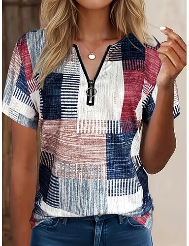 Per donna Maglietta Zip a un quarto Grafico Geometrico Tropicale Hawaiano Elegante Manica Corta Girocollo Top Regolari Quotidiano Sportivo Uscire Blu Rosso Viola Arancione Verde Estate Primavera