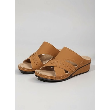 sandali con zeppa slip-on da donna con design ritagliato, scarpe estive ortopediche comode e casual per passeggiate quotidiane, spiaggia e giardino
