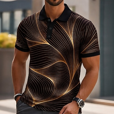 Per uomo Astratto Linea Polo Manica Corta Magliette polo Camicie con Colletto Casual Athleisure Bottoni Primavera & Estate Blu Nero Viola