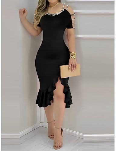 Per donna Abito Midi Tubino Abiti semi formali Ufficio Vestibilità regolare Semplice Manica Corta Girocollo Blu Nero Rosso Fucsia Estate Primavera