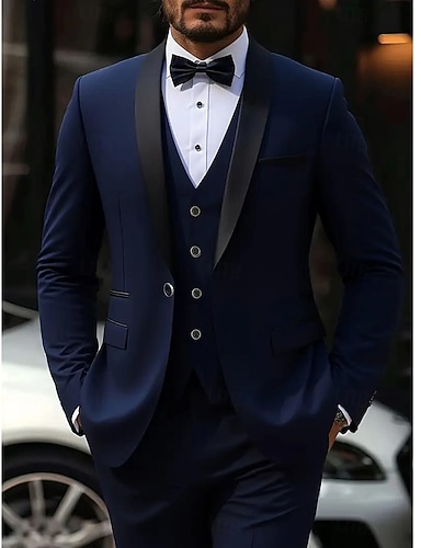 Uomo Completi Affari Matrimonio Nero Blu marino Primavera, Autunno, Inverno, Estate Tuta Formale Abbigliamento da lavoro Tinta unita Vestibilità standard 3 pezzi Monopetto Due Bottoni