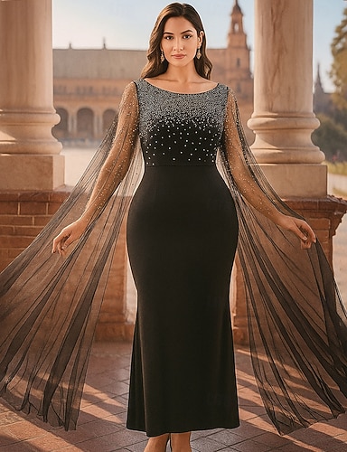 Tubino Colonna Lunghezza alla caviglia Abito nero Abito da invitata a nozze Abito Formale Abito da cerimonia per signora Manica Lunga Girocollo Elegante Vintage Festa Formale Ferie Serata Formale