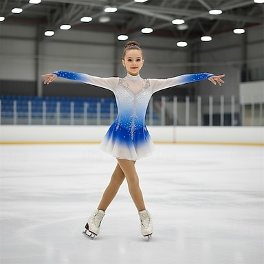 Vestito da pattinaggio artistico Per donna Da ragazza Pattinaggio sul ghiaccio Vestiti Blu Foro per pollice tintura sfumata Elevata elasticità Professionale Competizione Vestiti da pattinaggio sul