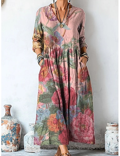 Per donna Abito maxi Set di vestiti Abito a trapezio Vacanza Boho Spiaggia Vestibilità regolare Floreale Grafico Manica 3/4 Scollo a V Blu Rosa Verde Estate Primavera Autunno Inverno