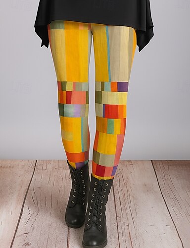 Per donna Leggings Vacanza Vintage Moda Lunghezza alla caviglia Vita Alta Grafico Astratto Geometrico Stampa Calore Termico Morbido Traspirante Elasticizzato Quotidiano All'aperto Vacanza Giallo