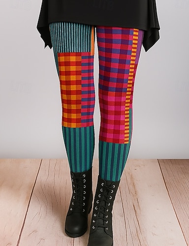 Per donna Leggings Vacanza Vintage Moda Lunghezza intera Vita Alta Grafico Blocco di colori Astratto Stampa Calore Termico Morbido Traspirante Alta elasticità Quotidiano All'aperto Vacanza Arancione