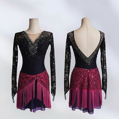 Vestito da pattinaggio artistico Per donna Da ragazza Pattinaggio sul ghiaccio Vestiti Borgogna Collage Scollatura posteriore Retato Elastene Elasticizzato Addestramento Da allenamento Professionale