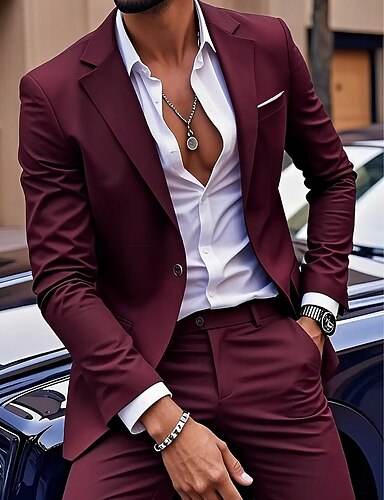 Uomo Completi Affari Matrimonio Borgogna Primavera, Autunno, Inverno, Estate Tuta Bavero classico Quotidiano Formale Tinta unita Vestibilità standard 2 pezzi Monopetto Due Bottoni