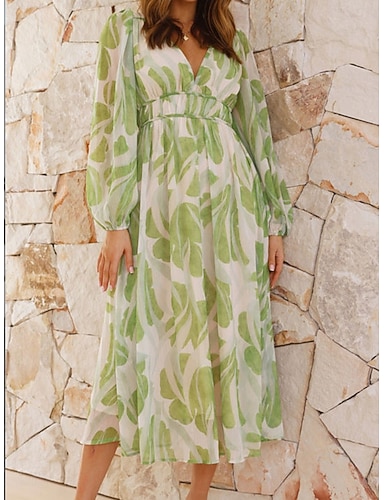 Per donna Vestito longuette Abito casual Elegante Moda Informale Da mare Feste Giornaliero Morbido Floreale Manica lunga A V Verde Estate Primavera Autunno