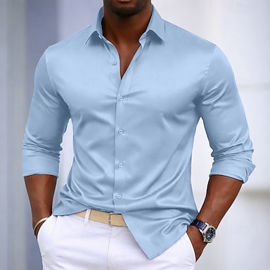 Per uomo Camicia Camicia in raso Camicia elegante Camicia casual Camicia con Bottoni Camicia da Ballo Semplice Feste Matrimonio Blu Blu chiaro Nero Bianco Manica Lunga Bavero Tutte le stagioni