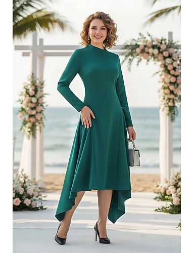 Linea ad A Asimmetrico Abito da invitata a nozze Abiti per invitati a matrimoni Elegante Quotidiano Manica 3/4 Collo Alto Festa in giardino Matrimonio con Tinta unita