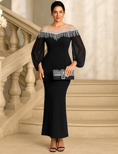 Tubino Colonna Lunghezza alla caviglia Abito da invitata a nozze Abito Formale Abito da sera Abito da cerimonia per signora Manica Lunga Senza Spalle Elegante Vintage Festa Serata Formale Ricevimento