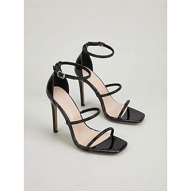 Sandali neri da donna con tacco a spillo e cinturini, scarpe eleganti con cinturino alla caviglia e punta aperta per cocktail party ed eventi serali. &occasioni formali