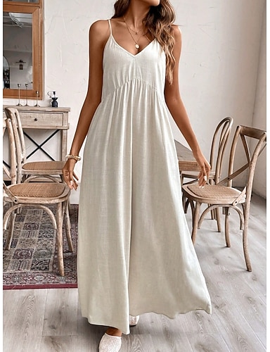 Per donna Abito maxi Abito a Tubino Vestito Casual Abito in finto lino Moda Moderno Quotidiano Weekend Vestibilità comoda Semplice Senza Maniche Spalline sottili Albicocca Estate Primavera
