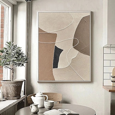 Dipinto a olio fatto a mano su tela, decorazione da parete, morandi, geometrico, a blocchi di colore, figura astratta per arredamento d'interni, dipinto appeso su telaio teso/dipinto arrotolato senza