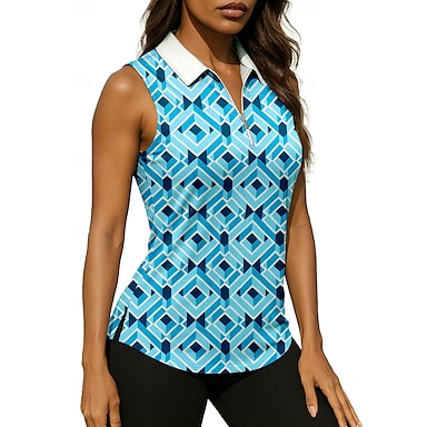 Per donna Geometrico Top Maglietta sportiva Polo da golf Maglia da tennis Senza Maniche Cerniera UPF50+ Resistente ai Raggi UV Alta elasticità Traspirante Tennis Pickleball Corsa Collo ripiegato