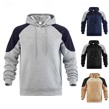 Per uomo Jacquard Felpa con cappuccio Nero Blu marino Cachi Grigio chiaro Con Cappuccio Semplice Patchwork Blocco di colore Tasca a marsupio Sport & Outdoor Casuale Quotidiano Streetwear Cool