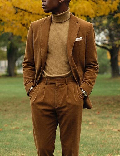 Uomo Completi in Tweed Casuale Affari Nero Borgogna Autunno & Inverno Tuta Bavero classico Quotidiano Casual Tinta unita Vestibilità su misura 2 pezzi Monopetto Due Bottoni