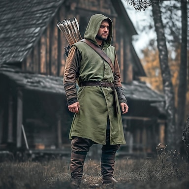 Retrò Vintage Punk & Gotico Medievale Mantello con Cappuccio Scialli Senza maniche Ranger Elfico Tinta unica Costume Per uomo Vichingo Fantasia Halloween Carnevale Feste Adulti Top