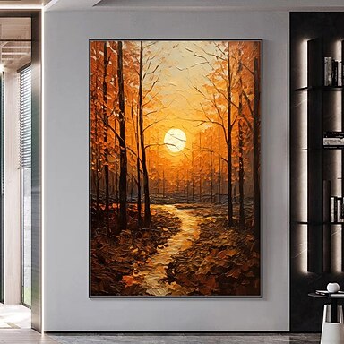 betulle dipinte a mano, pittura a olio su tela, decorazione da parete boho, paesaggio autunnale della foresta di betulle, arte di betulle, decorazione da parete, arte da parete astratta