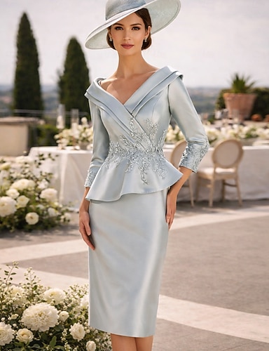 Tubino Colonna Lunghezza Tè Vestito da Festa Abito da Cocktail Abito da invitata a nozze Abito da cerimonia per signora Manica 3/4 Scollo a V Elegante Vintage Formale Ospite di nozze Raso con