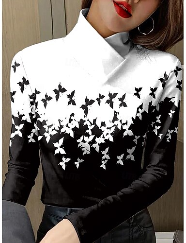 Per donna Maglietta Stampato Grafico Farfalla Elegante Vintage Classico Manica Lunga Collo Alto Collo asimmetrico Top Regolari Quotidiano Blu Bianco Viola Verde Cachi Primavera Autunno Inverno