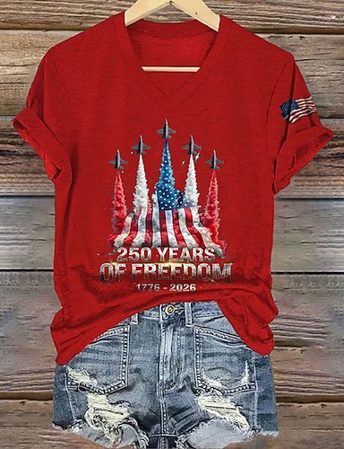 4 luglio 2026 250° Giorno della Memoria Maglietta a Manica Corta con Stampa 3D Patriottico Patriota Collo Rotondo Casual Quotidiano
