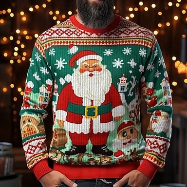 Maglione di Natale brutto Per uomo Babbo Natale Stampa 3D Maglione Maglieria Girocollo Casual All'aperto Regali di Natale Vacanza Tenere al caldo Manica Lunga Autunno Inverno Rosso Blu Verde
