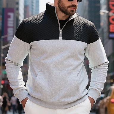 Per uomo Campeggio Nido d'ape Felpa Quotidiano Classico Casual Da caccia Collo alla coreana Zip a un quarto All'aperto Casa Ufficio Lavoro Nero Giallo Blu Marrone Grigio Con zip Autunno Inverno