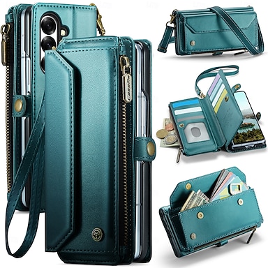 telefono Custodia Per Samsung Galaxy Piegatura a Z 7 Custodia Portafoglio Cerniera Protezione Completa con Cordino TPU Pelle PU