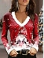 T Shirt da donna Natale Graphic Moda Vintage Casual Maniche Lunghe Collo a V Top Regolari Stampa Quotidiana Rossa Primavera Autunno Inverno