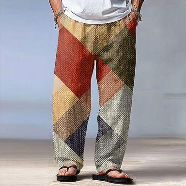 Per uomo Geometrico Blocco di colori Patchwork Pantaloni Pantaloni casual Pantaloni Larghi Misura del girovita medio Moda Casa All'aperto Vacanza Coulisse elastica in vita Pantaloni tipo lino con