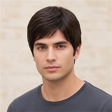 Parrucca corta marrone da uomo, capelli sintetici resistenti al calore con texture ondulata naturale per cosplay maschile