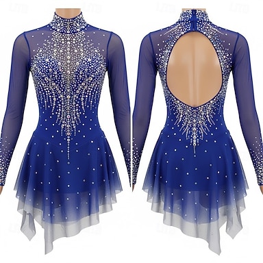 Abito da pattinaggio artistico Per donna Ragazze Pattinaggio sul ghiaccio Vestito Blu Schiena aperta Orlo asimmetrico Rete Alta elasticità Allenamento Competizione Vestiti da pattinaggio sul ghiaccio