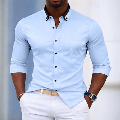 Per uomo Camicia Camicia elegante Camicia button-down Camicia non stiro Tinta unica Quotidiano Affari Blu Blu chiaro Nero Bianco Manica Lunga Collo ripiegato Tutte le stagioni Abbigliamento Patchwork