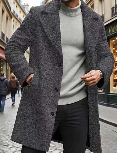 Per uomo Cappotto Trench Trench lungo Vacanza Quotidiano Autunno Inverno Poliestere Antivento Caldo Capispalla Abbigliamento Moda Classico Semplice Tasca Bavero Monopetto Un Bottone