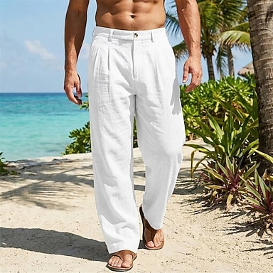 Per uomo Pantaloni di Lino Pantaloni Pantaloni Eleganti Pantaloni Estivi Pantaloni Larghi Tasca Gamba Dritta Semplice Comodità Traspirante Lunghezza intera All'aperto Affari Matrimonio Vacanza Moda
