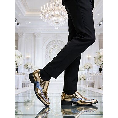 Mocassini dorati glitterati slip-on da Mardi Gras per uomo – Scarpe formali scintillanti per occasioni speciali feste e celebrazioni di carnevale