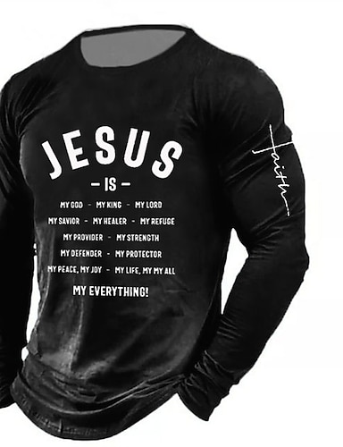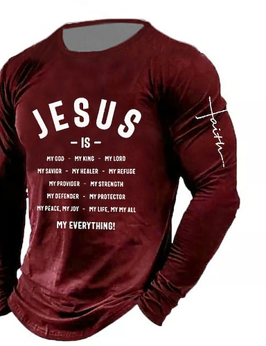 Maglietta Grafica Lettera Croce dei Templari Unisex della Bibbia per Uomini Stile Casual Stile Classico Maglietta a Maniche Lunghe Maglietta a Stampa 3D Collo Giro Leggero Classico Casual Esterno
