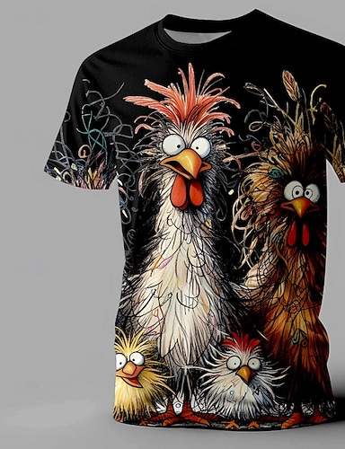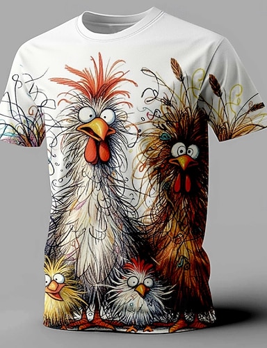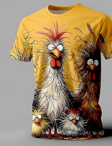 Per uomo Pulcino Divertente Maglietta Manica Lunga maglietta Stampa 3D Girocollo Camicia Designer Retrò Vintage Streetwear Casuale Quotidiano Nero Bianco Giallo Estate Primavera Autunno Abbigliamento