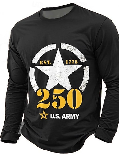 4 luglio 2026 250° Giorno della Memoria Maglietta Uomo Bibbia Stampa 3D Bandiera USA Collo a Giro Maniche Lunghe Casual Quotidiano Street