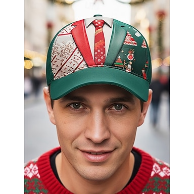 berretto da baseball da uomo con stampa di Babbo Natale, cappello regolabile con fiocco di neve rosso, accessorio invernale per feste e abbigliamento da esterno