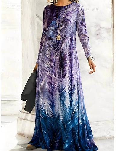 Per donna Abito Lungo Maxi Abito Vestito Casual Vestito a ruota Abito Boho Elegante Vintage Quotidiano All'aperto Weekend Vestibilità regolare Ombre Floreale Manica Lunga Girocollo Blu Viola Verde