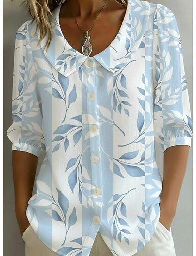 Per donna Camicia Stampato Floreale Grafico Elegante Vintage Tropicale Mezza Manica Scollo a V Top Regolari Quotidiano Ferie Abbigliamento mare Bianco e blu Estate Primavera
